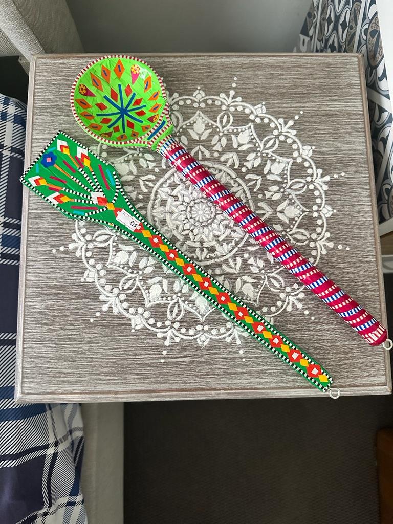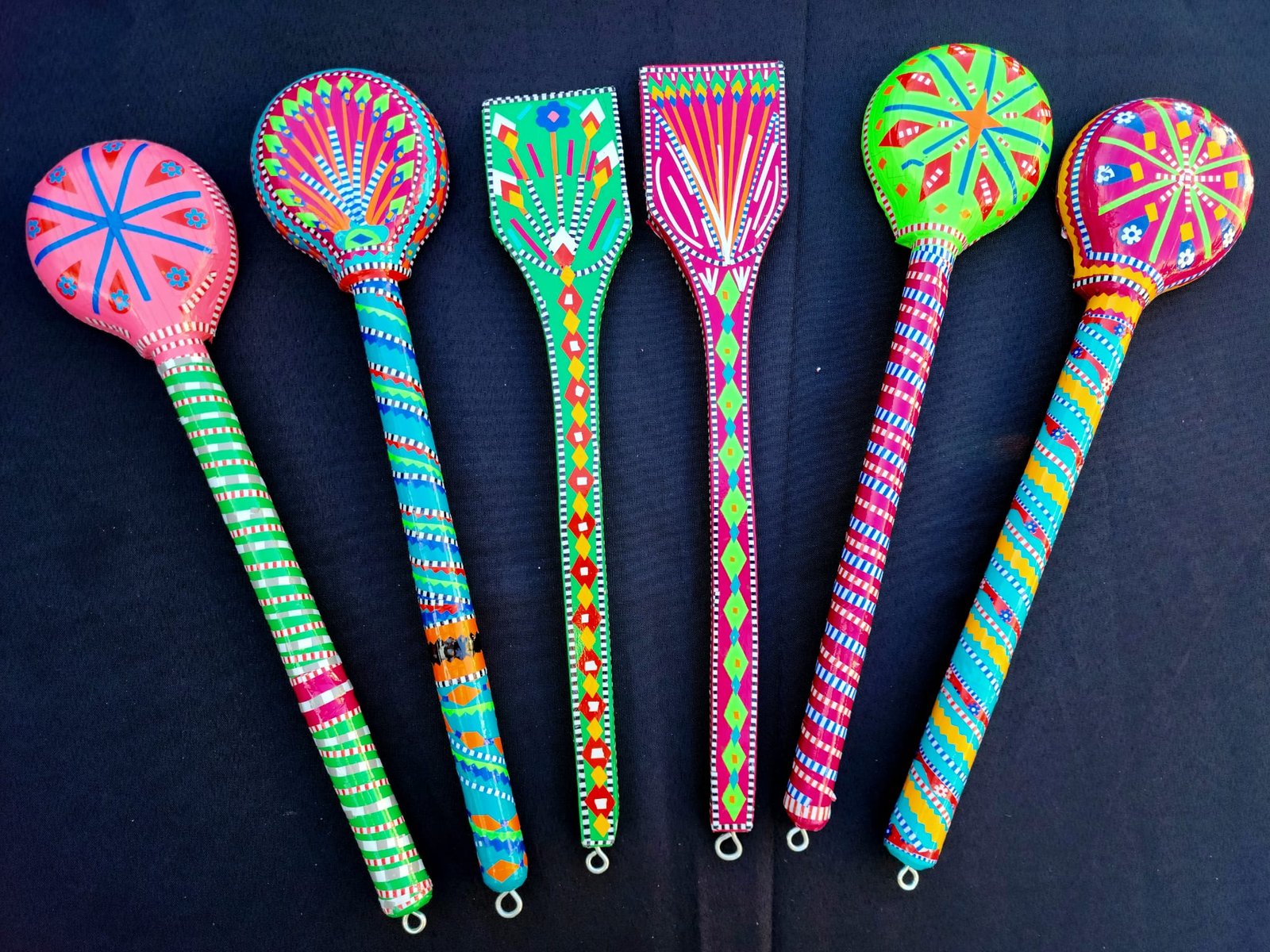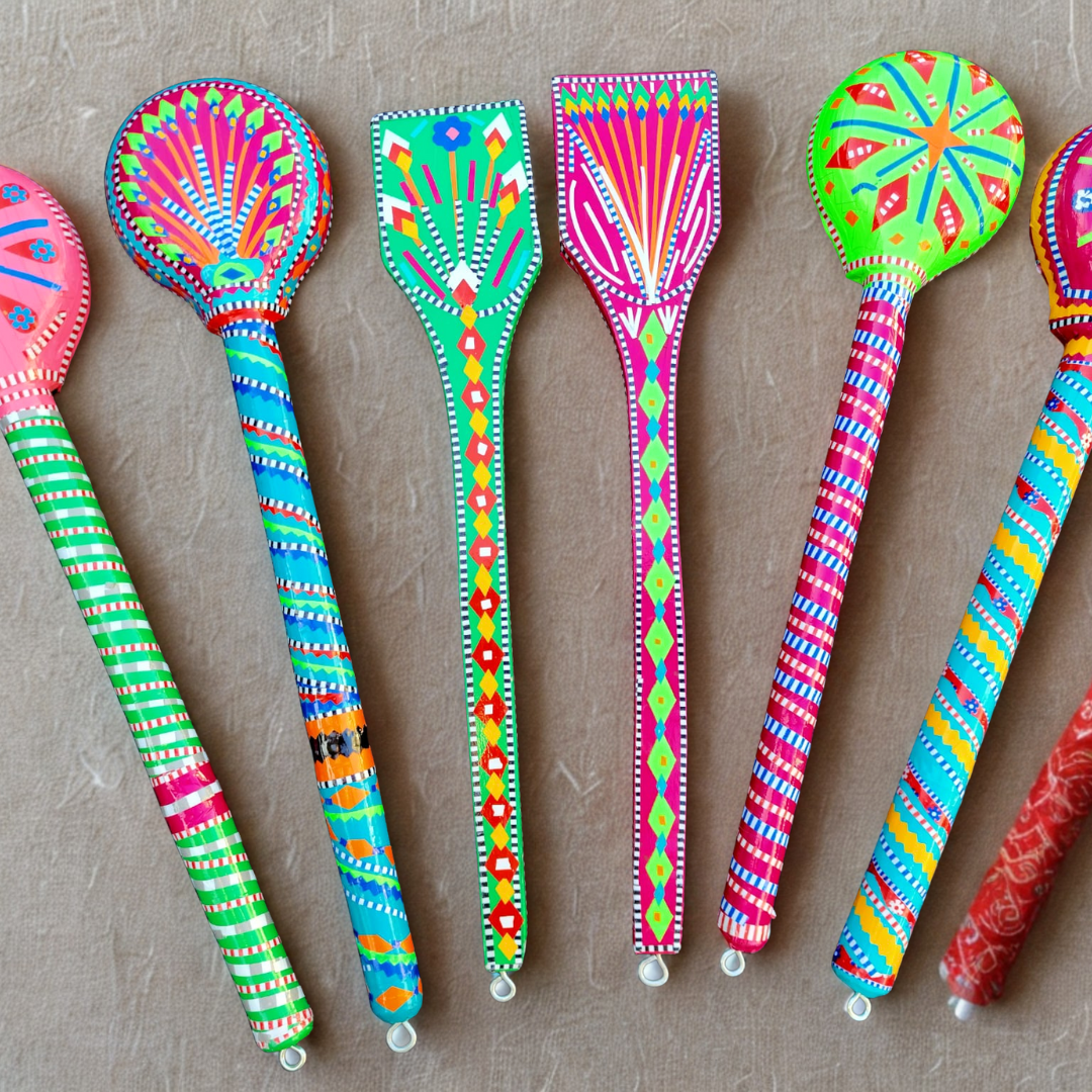 the Wooden Spoon and Spatula, featuring a stunning Truck Art Design that adds a touch of elegance to your kitchen decor.