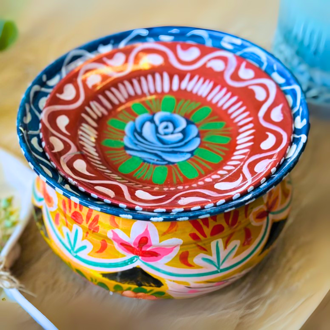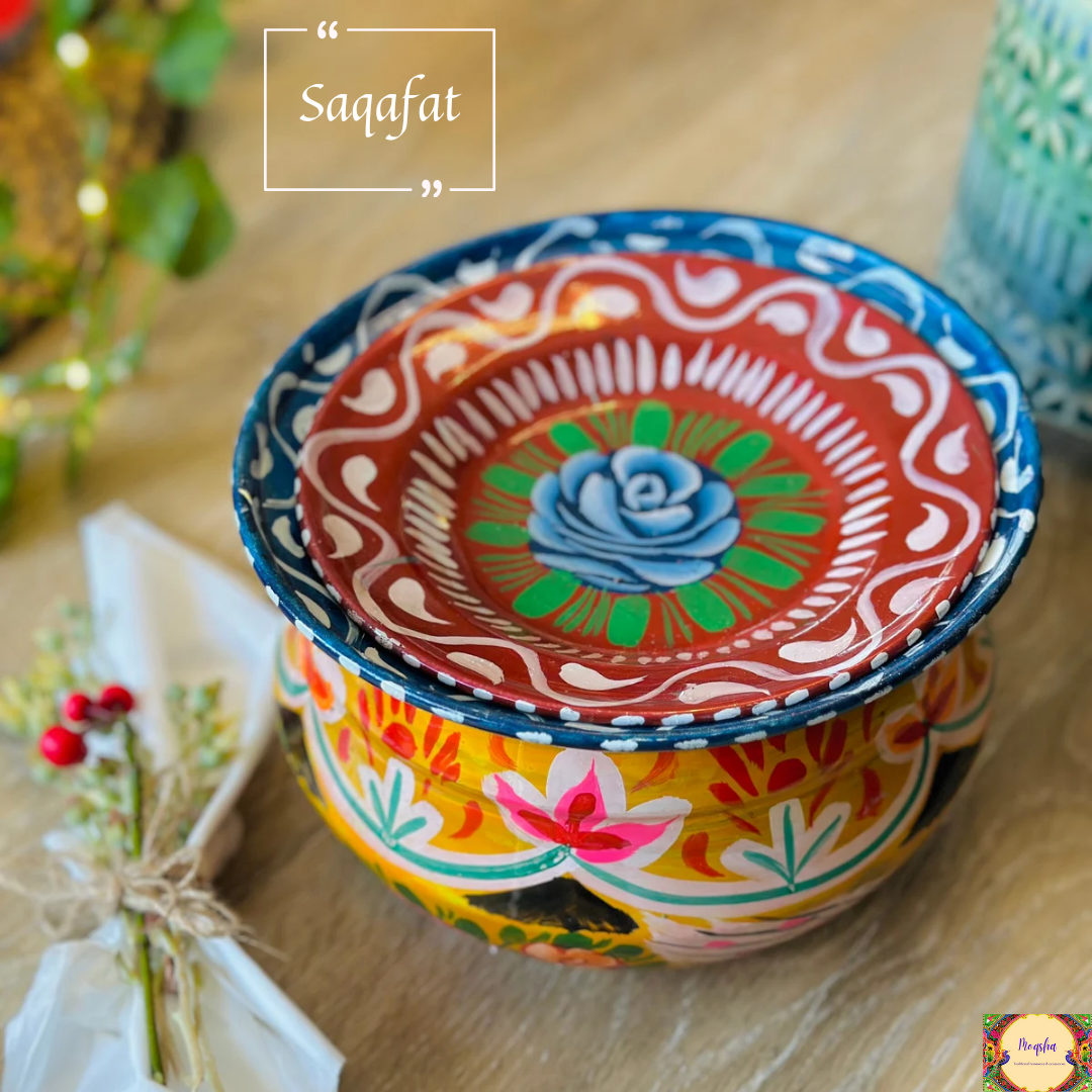 Handmade mehrab design 2 tier wooden tray. Make your table colorful with this elegant traditional art.