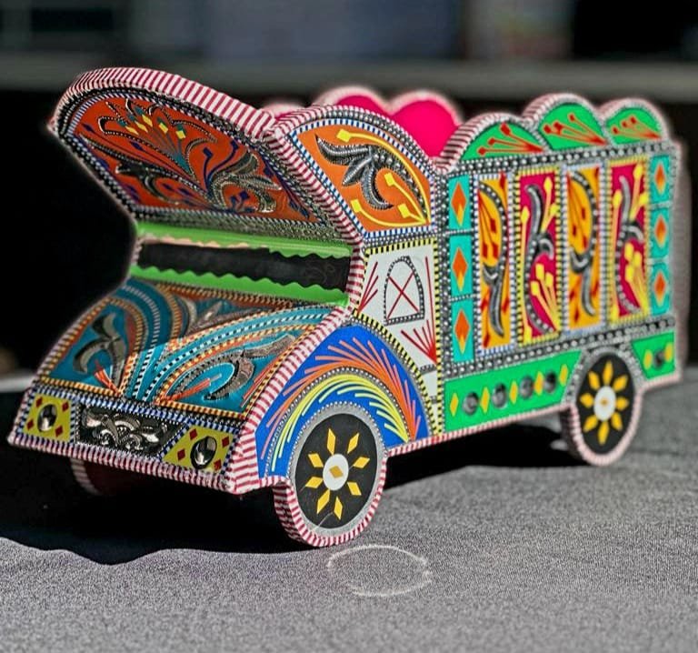a Truck Style Tissue Box Cover in a striking Pakistani Truck Art design. This Tissue Box Holder, designed with premium quality and enduring durability, arrives in a captivating array of colors that will redefine your home decor.Discover the perfect balance of function and style with our Unique Tissue Box